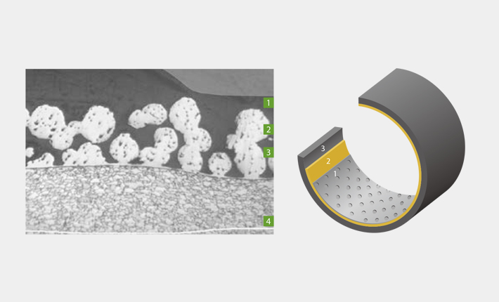 2. 青铜粉层,作为自润滑层的附着体。
